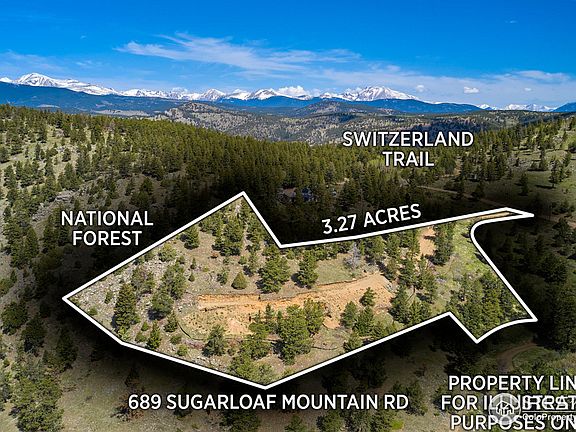 Are you looking for a property that enjoys unobstructed panoramic views from James Peak & the Divide to the city of Boulder & beyond? Then welcome to 689 Sugarloaf Mountain Rd, a stunning 3.27 acre lot in the foothills above Boulder. The current owners have received Site Plan Review approval & building permits from Boulder County & work has already begun. A gated driveway leads to the building site which was chosen to ensure privacy while maximizing views & has been excavated for foundation footers. Electricity is onsite and a new 725' well has been drilled. The septic design & location have also been approved by Boulder County. The property borders Roosevelt National Forest & is steps away from endless outdoor adventures on the famous Switzerland Trail. With downtown Boulder just 10 miles away, shopping, restaurants, & entertainment are all easily accessible. Bring a prepared lunch & enjoy the views from a picnic table on the property during your showing, but please - leave no trace.