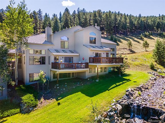 Gorgeous, luxury townhome in coveted Chimney Creek offers a babbling brook with your slice of mountain paradise. Entertain family and friends on your expansive indoor/outdoor living space including the warmth and style of the 3 sided fireplace. The home boast approx 50K in upgrades including new flooring, new countertops, new shower/tile in upstairs primary 5 piece bath, new HVAC, new retractable awning, new appliances in kitchen. With easy access to covered deck, you can enjoy your time sipping coffee and watching the wildlife. This lovely home has the most incredible private suite with separate vanities in bath, soaking tub, walk-in shower, 2 expansive walk-in closets and mirrored/lighted dressing area. Your guest will love the private guest room in the basement with huge family room and remodeled bath. Home has two car garage and incredible vaulted ceilings throughout. East access to I-70. Enjoy the tranquility and peaceful mountain living in this well maintained and loved home.