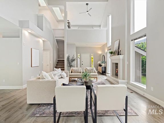 Come check out this beautifully updated home in Eagle on a quiet little cul-de-sac! You will love the large windows and high ceilings that make this home feel so bright, modern and spacious! Step into the backyard with large mature landscaping and a yard that backs up to walking paths and common area. The primary bedroom has new flooring, an updated bathroom and your own private balcony to enjoy! In addition to the other two bedrooms there's a great flex/loft/office space for whatever you want it to be! New paint throughout the entire interior of the home makes it feel fresh and ready for your ideas to make this home your own! There is room to park a small RV or trailer on the side as well.