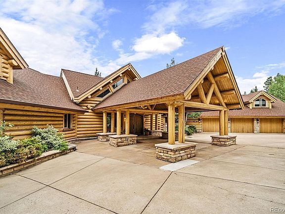 Secluded mountain luxury along the gateway to some of the best ski resorts and hiking areas in the world. This home boasts coziness and warmth while still being able to host large parties and events in its well laid out 9,000 sq foot floor plan. Upon being welcomed into this Swedish Cope constructed log home, you will see a grand resort style fireplace and very high ceilings in the living room with a loft area for reading and relaxing above. The main floor primary bedroom has a spa like bathroom, oversized walkthrough closet, private office and hot tub room leading to the deck. The kitchen is appointed with high end Viking appliances, and a fully equipped walk-in pantry to add functionality and keep the kitchen space pristine. Flex space with bathroom above the 3 car garage adds a number of options ranging from a mother in law suite to a game room, or the limits of your imagination. The lower walkout basement has 3 more bedrooms, full wet bar, gym, a wine room and a theatre seating movie theatre. Nestled into a low traffic private road, the home backs to a tranquil meadow often filled with wildlife. The home is still just minutes from Evergreen's shopping area and less then 20 minutes from all of the west Denver area amenities such as Red Rocks Amphitheatre.
