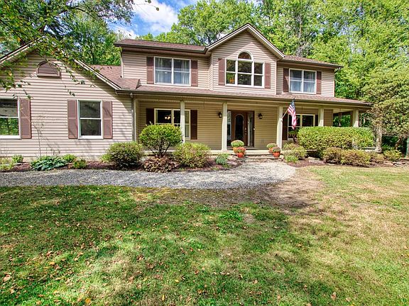 Welcome to your dream retreat! This exquisite 2-story home offers the perfect blend of luxury and comfort, nestled on 5 picturesque acres with a serene pond. With two primary suites one conveniently located on the first floor this home is designed for both elegance and ease. Step inside to discover beautiful hardwood and tile floors that add a touch of sophistication to the main living areas and bathrooms. The sunroom with vaulted ceilings invites you to relax and enjoy the stunning views of your private property. The gourmet eat-in kitchen is a chef's paradise, featuring double ovens and plenty of space for culinary creations. A private study on the first floor provides a peaceful workspace, making it easy to balance work and home life. Each primary suite boasts an adjoining bath, ensuring privacy and convenience. Immaculately maintained and thoughtfully designed, this home offers a rare combination of modern amenities and natural beauty. Don't miss out on this!