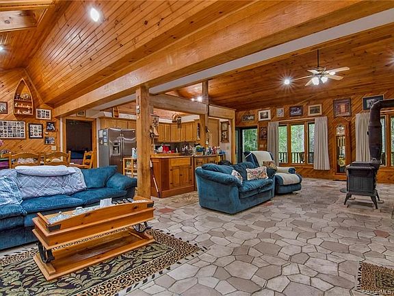 Unique, very secluded, can not be seen from the road property with over 400 ft of water frontage on Little River. Open floor plan with great room which has a stone fireplace and bake oven, dining room and kitchen with ss appliances. Tongue and groove vaulted ceilings and walls. Mexican style stamped concrete floors with radiant heating throughout the home on 4 separate heating zones. 2 zones for radiant heat and 2 zones regular. Master suite has attached office and master bath with jetted tub and oversized shower stall. Two additional bedrooms share a bath room. The front of the house has a covered porch which overlooks the property. Large rear deck offers a nice place to relax and enjoy the outdoors. 10 motion detector flood lights outside. Basement has a room with window. Pressure treated lumber on deck. Enjoy nature and fish from you own section of Little River. Pristine trout stream eastern border of homes. Generator hook-up. Generator for sale. Please do not drive onto the property. Total of 6 acres - 4 in Canterbury and 2 in Scotland. Call for showings.