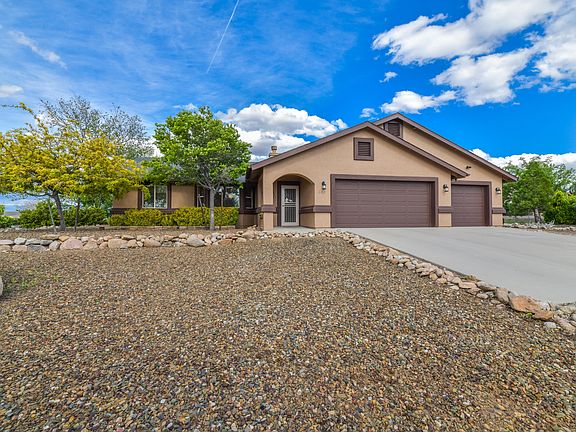 You will love this delightful home with country charm and breathtaking views. This 3-bedroom, 2-bathroom home has an insulated over sized 3-car garage--giving you 1,829 sq. ft. of a spacious home, potential 4th bedroom or master retreat, family/rec room, open kitchen, laminate, tile, and carpet throughout, faux wood blinds, private well, RV parking, and hookups. Imagine cuddling up to a cozy gas fireplace with a good book or relaxing in the spa-like master bath with jetted tub. Enjoy your evenings in the fenced back yard beneath the pergola. All of this situated on 1 beautiful acre in a convenient, friendly neighborhood, minutes from shopping, schools, parks and more and only twenty, minutes from shopping, schools, parks and more and only twenty minutes from downtown Prescott.