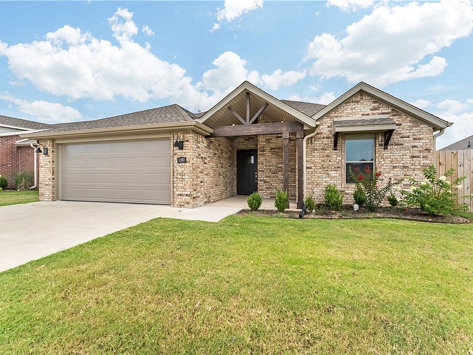 At 1,450 square feet this home is easy on the budget, but there's not shortage of space in this well designed 3 bed, 2 bath plan! The split floor plan provides a space to get away and relax in the master suite which features double closets off the double-vanity master bathroom. The open concept living area boasts a dream kitchen with pantry and ample custom cabinets and a spacious living and dining area to accommodate your family and friends! You"ll also enjoy the oversized laundry area with extra storage and ample closet space throughout the home. And, this beautiful home is well appointed with granite counters, stainless appliances, custom cabinets, a large covered patio, professional landscaping, gutters, and more!And, as if that's not enough, the neighborhood also boasts an amazing community pool, playground, and pavilion!