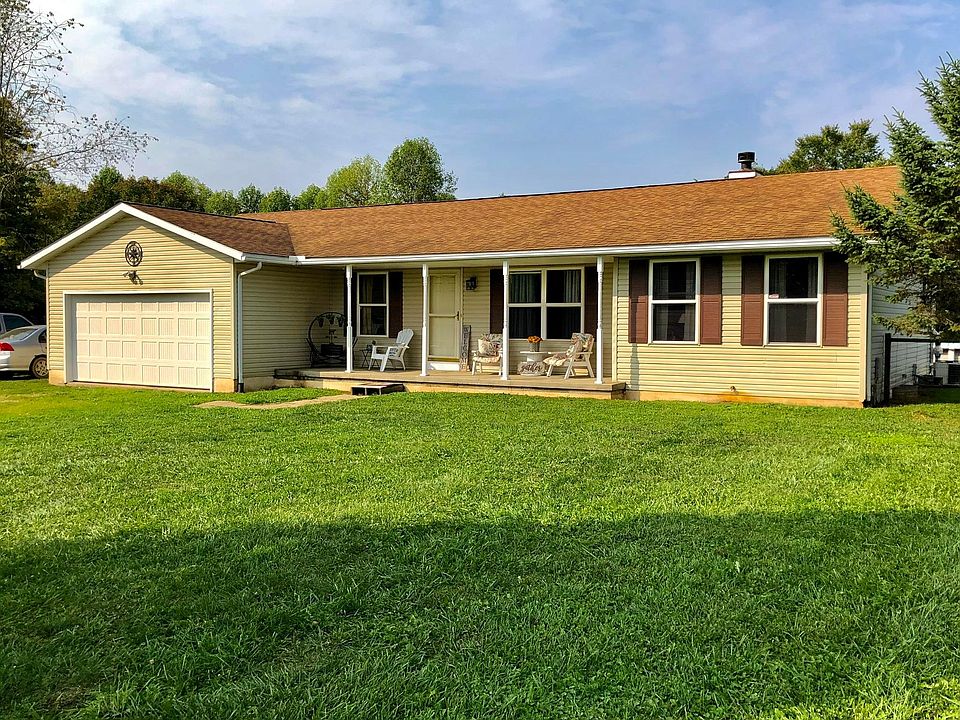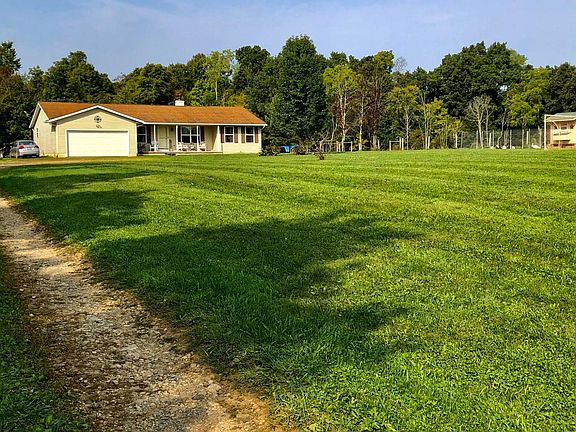 This Gorgeous ranch home sits on 25 acres with approximately 18 acres of woods loaded with Walnut Saplings, Cherry, Beech, Hickory, Red Oak Trees and two food plots for deer hunting. Large pond on this property is stocked with yellow perch, crappie, perch, bass, blue gill, white amur and catfish. Home features a fantastic open floor plan with first floor master and main level Laundry for easy living. Full Basement that can easily be finished to double your living space. Attached 2 car garage. Spacious deck and above ground pool perfect for entertaining and family get-togethers. Several small outbuildings with electric ran to all of them and a central boiler outdoor wood furnace to heat your home and water to save money in the winter!