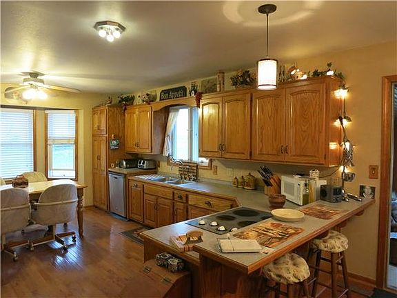 New roof & gutters coming soon! Country living but close to town! This 4 bdrm, 3 bath home is wheelchair accessible. Master has a handicap shower. Very open floor plan with vaulted ceilings in the living room. Sunroom on the main level. 6 panel solid doors throughout, Anderson windows, custom cabinetry, ground source heat pump + wood aux. The walkout basement is finished. 40x60 outbuilding has concrete floor, electric, 2-8 foot doors, and 1-10 foot door. Kitchen appliances stay + central vac, storm shelter. Lots of room to roam and very, very little gravel. Great garden space too!