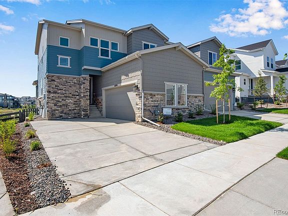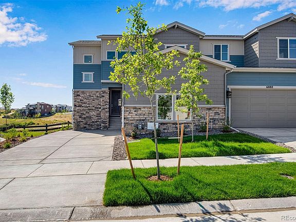 This beautiful paired home offers 4 bedrooms and 3.5 baths. The kitchen boasts dark grey stained cabinetry, quartz countertops, and SS gas Kitchen Aid appliances. Downstairs features a finished basement with an additional bonus room, bedroom, and full bathroom. Situated in the heart of Castle Pines, The Canyons merges new homes with nature by restoring the native landscape and upholding an etic of preservation. Almost one-third of the community is dedicated to outdoor space in the form of parks, 15 miles of trails, and open space. Gather with family and neighbors at The Exchange for coffee and events or take advantage of the amenities at Canyon House with a resort-style pool and spa, fitness center, patio with firepits, and pickleball courts. Community events abound with a monthly music series and larger holiday festivals.