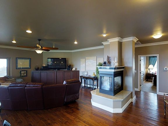Breathtaking panoramic views, from this 4 bdrm. 3 bath home. Beautiful open floor plan with Brazilian Walnut flooring, propane fire, built-ins, covered deck with jacuzzi, firepit and Big screen TV. Big Master suite & bath w/Sauna Shower, large walk in closet, Guest quarters complete with kitchen, laundry, private patio and entrance and a view! 3 car over-sized garage. Granite Kitchen and stainless steel appliances, Custom cabinetry.