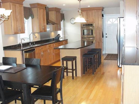 Gorgeous 4 BR brick colonial with fireplace! New custom gourmet eat-in kitchen, maple cabinets, stainless steel appliances, granite, double oven, wine fridge, hot shot, custom lighting! New hardwood floors throughout first floor. Second floor full bath remodel. New Frieze carpeting upstairs and all bedrooms. New washer and dryer on second floor. Huge master bedroom with master bedroom bath. Finished basement with office and rec room. Stamped concrete driveway, porch 2010. Newer 6 ft composite fence. New hot water heater. 2002 double pane windows, tear off roof, HVAC. Too many improvements to list! A++++