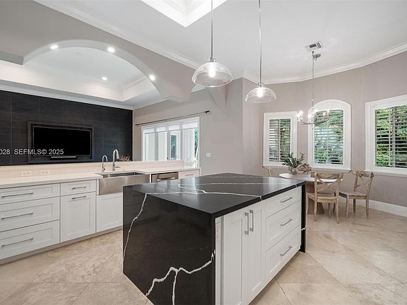 Experience newly remodeled sophistication at 6890 SW 94th Street, Pinecrest, FL an exceptional one-level estate featuring high ceilings throughout, set on 1 acre of mature, beautifully curated landscape. Ideally situated in North Pinecrest on a prime, private one-way street, this residence offers unmatched convenience, surrounded by top schools including Gulliver, Temple Beth Am, and Pinecrest Elementary. This stunning home blends timeless design with effortless, resort-style living. Expansive sun-filled interiors showcase soaring tray ceilings, elegant columns, and a seamless flow between formal and informal living spaces. Enjoy a sophisticated dining room, a spacious family room, and a beautifully updated chef’s kitchen complete with premium cabinetry, stone countertops, and a striking center island. Generously sized bedrooms feature warm wood flooring, abundant natural light, and well-appointed bathrooms. The luxurious primary suite offers a serene retreat with its spa-inspired bathroom, including a freestanding soaking tub, large glass-enclosed shower, dual vanities, and expansive custom closets. Step outdoors to your private tropical sanctuary: a sparkling pool and spa surrounded by lush greenery, covered terraces, and ample lounging areas perfect for both relaxation and entertaining. A long brick driveway, manicured grounds, and elegant entryways further elevate the property’s impressive curb appeal.
