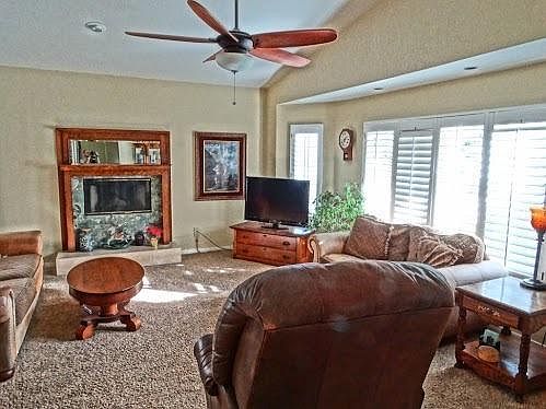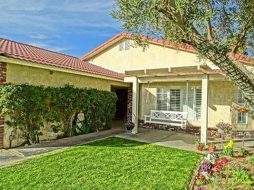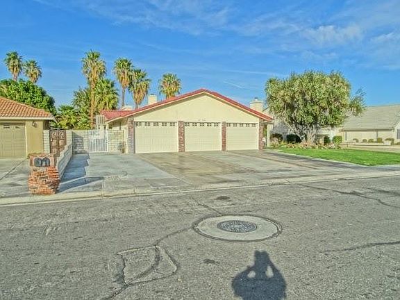Great opportunity to own a home on Cathedral City's famous Candy Cane Lane! Enjoy the front porch swing all year long and especially during the holidays! This custom-built home includes 4 spacious bedrooms, 4 full baths, huge family room and living room. The remodeled kitchen features custom Kraftmaid cherry cabinets, full suite of stainless steel Thermador appliances. Huge granite island (over 50 sq ft) and in-kitchen fireplace, Shaws Original farmhouse sink. Travertine floor throughout kitchen and dining rooms complete the heart of this home. This unique floor plan includes a downstairs bedroom, bathroom, 2nd kitchen and a large great room. Plantation shutters, dual a/c, 2 evaporative coolers, newly upgraded pool equipment, freshly painted interior, new epoxy flooring in garage. Pebble-Tec pool and spa.