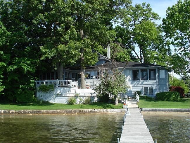 Spectacular Klinger Lake home with 175' prime location & sandy shoreline. Great value with 3.5 lots. Beautiful 830 acre all sports lake on one side and Klinger Lake Country Club #1 fairway on the other, www.klingerlakecc.com. Large windows for lots of natural light & lake views. Grand 2-story foyer with open staircase, spacious rooms, large 3-season porch, multi-level deck and lots of privacy. Main level master suite with walk-in closet, lake view and master bath with heated floor, walk-in shower with bench seat, whirlpool tub and double vanity. Private guest quarters upstairs with 2 BRs & 2 full baths. Open living room with fireplace & built-in shelves. Three walls of windows overlooking the lake in the dining room designed to accommodate a crowd with wet bar. Kitchen features custom Amish cabinets & high end appliances, family room with mini bar, office or extra bedroom, 3-4 BRs, 4.5 baths and plenty of storage. Many custom features & beautiful landscaping. A Must See