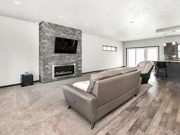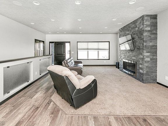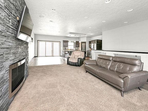 Head downstairs to a cozy family room with an included theater system, surround sound, a second fireplace, wet bar, 2 more bedrooms, and a third bathroom. Outside, enjoy a maintenance-free fence, a patio for grilling out, and a sprinkler system for a lush lawn.