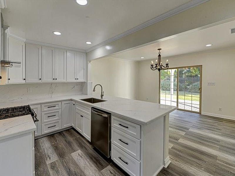 A remodel has just been completed at this spacious, modern and quiet single level home now for lease! The new kitchen is a home chefs dream, gorgeous new quartz counter tops, all new custom white cabinets, and all new stainless steel appliances. A five burner Range, Range Hood, Dishwasher and Refrigerator are all included. The brand new quartz counter tops include a large peninsula perfect for counter seating. This large kitchen is open to a very spacious dining room with tons of space for dining or entertaining with a sliding door that leads out to a super large and very private wonderful backyard. There are three bedrooms and two bathrooms. The primary bedroom includes a ceiling fan, new window coverings and a fully remodeled en suite bathroom with gorgeous new tile shower, quartz counter top, new sink, and new white custom cabinets. This primary suite also comes with a very large walk in closet and a secondary closet with mirrored doors. The second bedroom is so spacious and boasts new window coverings, a ceiling fan and a large closet with mirrored doors. The third bedroom has new window coverings, a ceiling fan and a large closet with mirrored doors, and it is located on the other side of the home offering privacy for guests or it is perfect and so convenient to use it as a home office! Modern recessed lighting, new vinyl plank flooring, new paint and new shade window coverings throughout. Central Air Conditioning and Heating. Tons of windows to let the natural light in. There is single car attached garage, with a new washer and dryer included! This turn key home truly has it all and is move in ready! Step outside to the backyard which offers so much more, the fully landscaped space is so beautiful, with lots of plants and fruit trees. There is tons of space here to use whether it is for your own peaceful retreat, gardening, dining or entertaining. There is even a shed in the backyard with plenty of space for storage. Close to freeways for easy access to everything. Close to shopping, dining and entertainment. Just a short drive to Knott's Berry Farm, Los Coyotes Country Club, Costco and more! Owner pays for gardener. Tenant pays all utilities. Tenant required to have renters insurance. No Pets. See link in listing for a virtual matterport tour. 12 Month lease. Available 01/01/2023. Owner pays gardener. Tenant pays all utilities. Tenant must have renters insurance. Move in costs are 1st months rent $3700, security deposit $3700 and one time non refundable cleaning fee $250. There is a $38 non refundable application fee. All applicants will be require to provide the following: Application for Each Person 18 Years of Age and Over Two Months Current Bank Statements Two Months Current Pay Stubs Copy of Government Issued ID (for example Drivers License) Credit Report