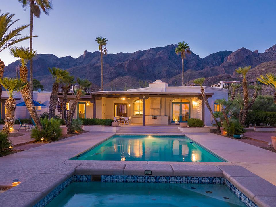ABSOLUTE 360 VIEWS atop the stargazing deck at this Mediterranean home tastefully blended with southwestern charm. Enjoy the spacious rooms; open yet private. Here delight in the entertainers dream; many patios surround you plus built in bbq off kitchen. Pool and spa flow into city lights & Catalina Mtn. views. Character surrounds this beautiful manicured home. Excellent floorplan; Room w/pool table is perfect as 2nd master or guest suite; w/entry to dynamic back yard. Buy the house and get a ''lot'' more! Additional .57 ac lot north of prop lovingly landscaped ''naturally'' for additional privacy. Floor plan provides privacy plenty of space & storage. The best 5 bedroom (or 4 bdrm plus office or media room)in the area/price. Make your reservation for your Private Showing today!