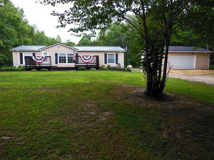 Are you seeking the perfect private location with easy access to Midland? This is it! Situated in a wooded setting and hidden from the road is this attractive manufactured home with lots of updates. There are ten mostly wooded acres here as well as a large, heated and insulated garage outbuilding. The garage has a fantastic workshop with extensive storage and double door with opener. The home sits on a full basement which would make a great storage area or finish for additional living space. The main floor is open with a large kitchen and hardwood floors. Traditional layout is split with two bedrooms on one side of the home and a large master suite with walk-in closet on the other. The home is appointed with tiered landscape and two large decks. There is a new metal roof on the home as well. This is a great opportunity to own this private retreat! Call today for your personal showing.