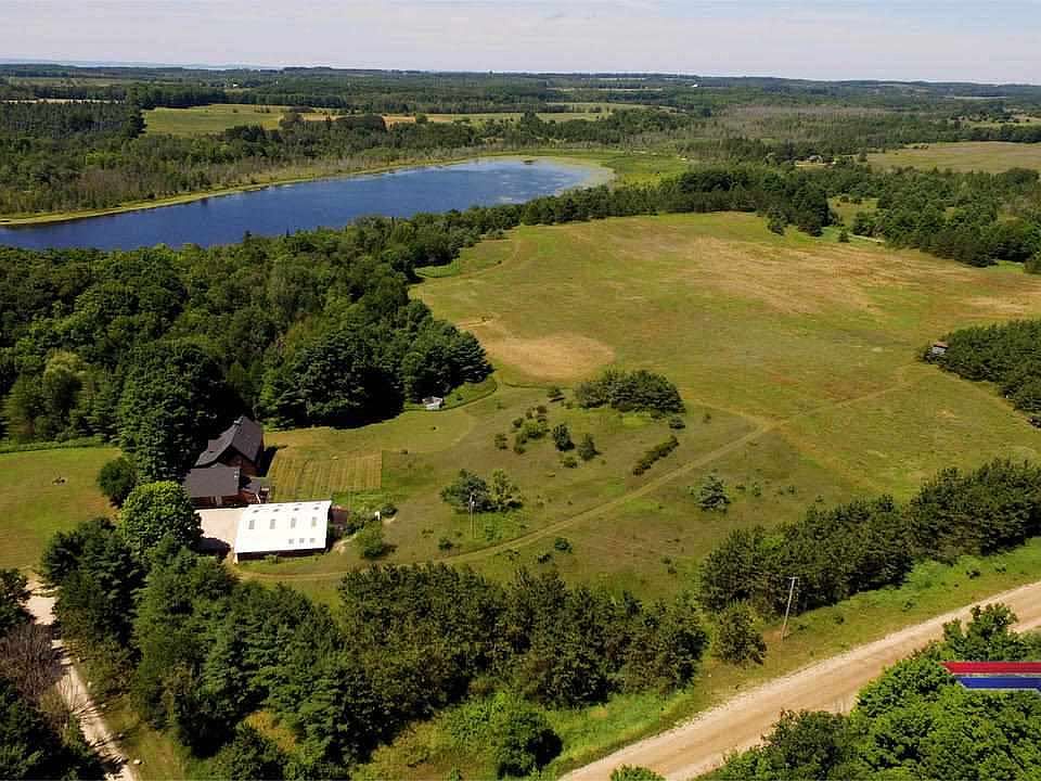 This beautiful 82-acre private retreat has many features: a beautiful rustic main house built by a local master builder, with 5 bed/2.2 baths, cedar wood interior, plank wood floors, and a screened-in porch. The property is situated on a private 40-acre spring-fed lake. An amazing cabin deeper in the property (sleeps 7 comfortably) constructed of old railroad ties is as cozy as it is unique The property boasts a large, newly cemented floor in the pole barn. If you like to hunt, this hunting property annually produces much success with deer, wild turkeys, and more. There are 4 fully heated, carpeted blinds with captains chairs. If you like water, than you have found your fishing and swimming paradise as well. The lake leads to a large stream on the southern portion of the property. Wait, there`s more - a heated chicken coop, 1500 sq ft vegetable garden, 2.5 miles of carved-out trails, hard woods, and open spaces, the only property in the area with virtually its own lake!!!!