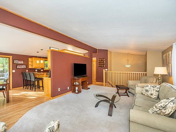 Welcome to this charming 3+, 1 1/2 bathroom split level home, situated on a beautiful 10 acre site. Inside the front door you will walk into a spacious entryway leading to the upper and lower level, as well as the attached 2 car garage. The upper level flows from the window lit Living room into the cabinet- filled kitchen with included appliances and breakfast bar, to the Dining area with a slider leading out to to the deck overlooking the side yard. The upper bedrooms have been updated with brand new carpeting. The roof was replaced this year (2025) . The lower level includes a Family room, bedroom, bonus room, office, and utility/laundry room. The bath on this level is currently a half bath but has been plumbed for a 3/4 bath and is ready for your finishing touches. There is also a pole barn for extra storage.
