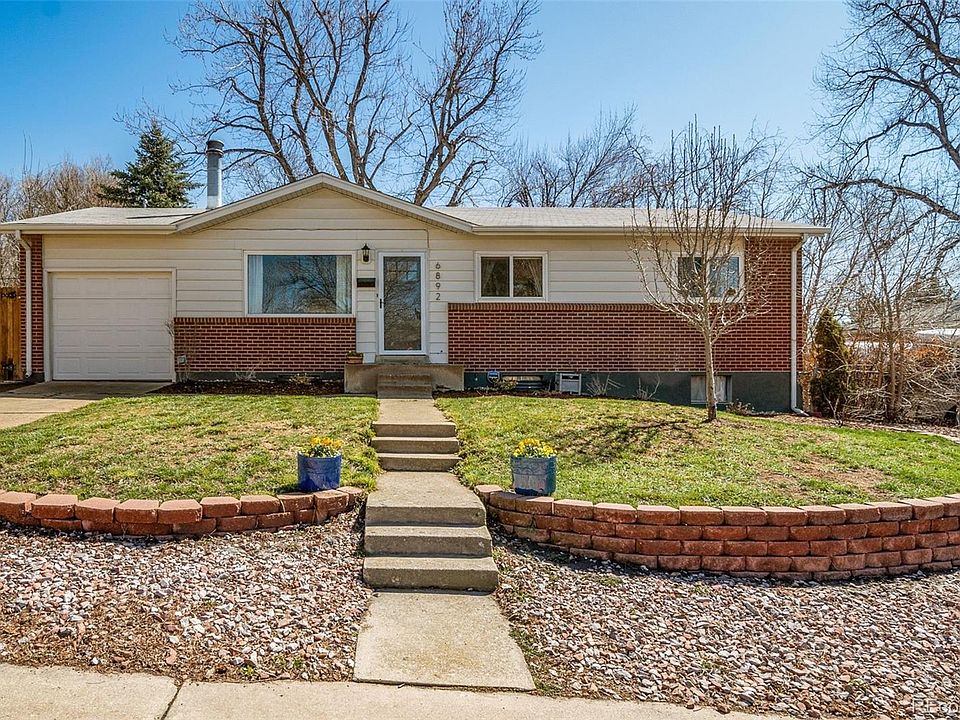 Beautiful, sunny, and great flow house on private, quiet lot. Remodeled with beautiful kitchen cabinets, quartz counters, and stainless appliances. JUST refinished the gleaming hardwood floors! Beautiful primary with ensuite bath, plus two other bedrooms and a full bath on the main floor. Living room, PLUS a LARGE family room with fireplace on the main floor, AND a bonus enclosed and finished 3 season porch room off the back of the house. Huge basement with large hangout room, a 4th bedroom with egress window, a 3/4 bath, large laundry room, and a storage room. Large garage with workbench, and oversized driveway and another fenced parking spot for car, boat, trailer, RV, etc. SERENE, treed backyard. WALK to numerous parks, Apex Tennis Center, and Ralston Creek Trail. Bike to OLD TOWN ARVADA and Light Rail Station. *** WHAT A HIDDEN GEM!*** OPEN HOUSE SAT 4/6 FROM 11-2.