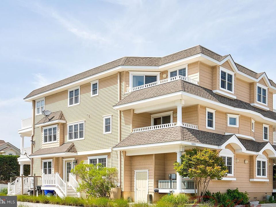 Discover this beautifully furnished and appointed Avalon townhome, boasting 4 bedrooms, 3 full baths, and the convenience of 3 off-street parking spaces. Just a short 2-block stroll to the pristine and serene south-end beaches. This home is perfect for coastal living. This home has been exceptionally well maintained by hands-on, local Owner. The first level features 3 bedrooms and 1 full bath and a full-sized rear deck. The second floor features a spacious living room with gas fireplace, dining area and kitchen (with wine fridge), perfect for entertaining and enjoying views of the bay and sunset from the large rear deck with a peek at the bay. The 2nd floor also features a laundry area, full bathroom with a tub / shower combination and small private deck. The stairs to the 3rd floor reveal an open view of the living area below and features a quiet nook for reading or relaxing, a sizeable master bedroom with ensuite bathroom, private deck off of the bedroom and an additional large, 3rd floor deck accessible from the area at the top of the stairs. Outside features include an outside shower, storage area and 3 off-street, assigned parking spaces. A