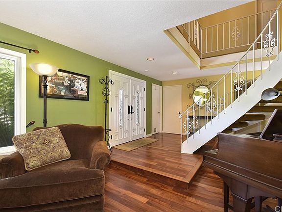 This inviting home with fabulous gourmet kitchen, flowing floor plan, and entertainer's backyard exemplifies the perfect California in-door/out-door lifestyle. Curved staircase in entry then step into the living room and dining room with Brazilian hardwood floors. Dual pane windows throughout home provides tons of natural light and garden views. The gourmet kitchen features custom cabinets, Thermador appliances, honed soapstone counters, touch faucet, instant hot water, a coffee bar, breakfast bar for casual dining. Kitchen opens to the family room with wood fireplace (gas starter) and floor to ceiling sliders with expansive views of the backyard and the treetops of Shipley Nature Center. A guest bedroom, three-quarter bathroom, and laundry room with ample storage is also downstairs. Upstairs features an open mezzanine over the entry, two additional bedrooms, a full bathroom and French doors to the outside balcony with finished, storage room in attic space. The master suite has double door entry, private bathroom, walk-in closet with custom built-ins and overlooks the beautiful backyard. The adjacent parent retreat is a flexible space which can be used as a 5th bedroom or your choice! The calming and very private backyard welcomes you with its' steel and glass fire-pit, built-in dining and buffet with storage, mature citrus trees, vegetable garden and lovely fountain frequented by hummingbirds.