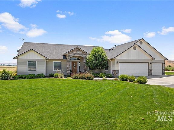 Welcome Home! Charming acreage property with fantastic views just outside your back patio of the Owyhee mountains. Located in highly desired Melba ID. sitting on over 30 acres. This single level, 4 bed 2 bath home boasts lots of space with an open floor plan. Primary bedroom with large ensuite. Split bedroom design. Oversized garage with the third bay extra deep with room for an easy 4th car. No HOA's to worry about. Home has its own well and septic. Come and check out this amazing property. Enjoy small town living, ideal location just minutes from the Snake River, schools, amenities, and Nampa! Plenty of room for a shop/barn. Shed with Power. Very clean and well-maintained home. Most acreage is being leased out to local farmer as of now. Don't wait! schedule an appointment to come see this wonderful property.