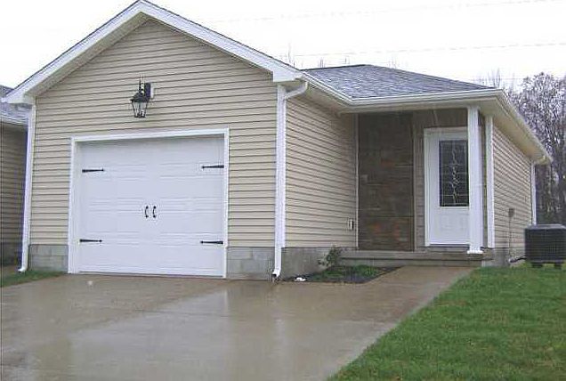 DUPLEX:Middle Unit 6895. Nice Newer 2 bedroom, 2 bath duplex ranch home with attached garage. Home features a maintenance free exterior, big garage, all electric home with covered front porch with columns. Leaded glass entry door, coat closet, and ceramic tile flooring. Living room opens to a wonderful kitchen with Cherry stained cabinets, breakfast bar, recessed lighting, neutral decor throughout, and all of the appliances are included. Master bedroom with ceiling fan and full bath with ceramic tile flooring and cherry stained vanity. Great home in a great location just minutes from schools & shopping, Tenants will pay Chandler water/sewer & Vectren. Tenant responsible for private trash pick up. Bed1 14x12, Bed 2 10x10. Liv/Kit combo is a smaller space that will not accommodate large living room furniture. Possible small pet with additional & non-refundable $300 pet deposit. Tenant responsible for yard maintenance.(*Pictures posted are of 6895 Crescent Dr. all duplexes are similar)