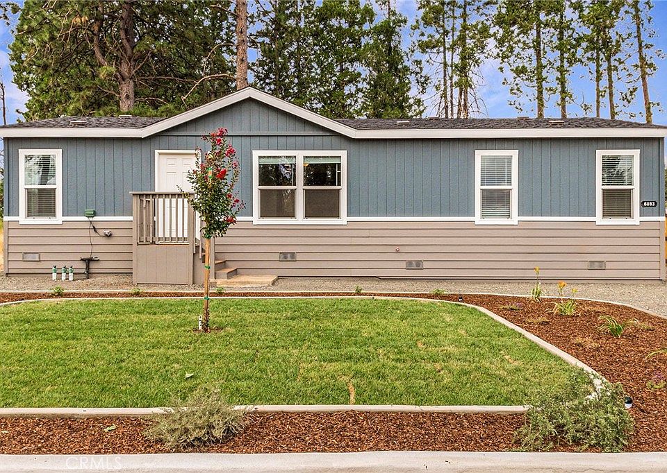 Wow! Take a look at this 2-Bedroom, 2-Bath Home PLUS bonus room offering 1,296+/-SqFt on a nicely useable .33-Acre parcel near the Feather River Canyon in Paradise! You’ll love this floorplan with a large, open great room in the center of the home, with a spacious primary suite on one side of the home, and a den, office or bonus room and a nicely appointed guest bedroom on the other side. The upgraded kitchen offers attractive cabinetry, black appliances with 5-burner gas range, island with bar seating, corner sink, dining area and lovely views of the yard. Tall ceilings, crown molding & Ecobee thermostat also add a touch of luxury to the home, separate laundry room with utility sink & room for a freezer. Nicely landscaped front yard with territorial views, wood fencing and even some majestic mature trees in the yard. This great home also offers great energy efficiency with R33 Attic, R22 Wall and R11 insulation in the flooring for additional energy savings. Be sure not to miss all the great Recreational opportunities in the area including lakes, hiking, biking, fishing, ATV and dirt-bike riding, canoeing, kayaking and much more! Take a look at this tremendous property and you may decide to call this one HOME!