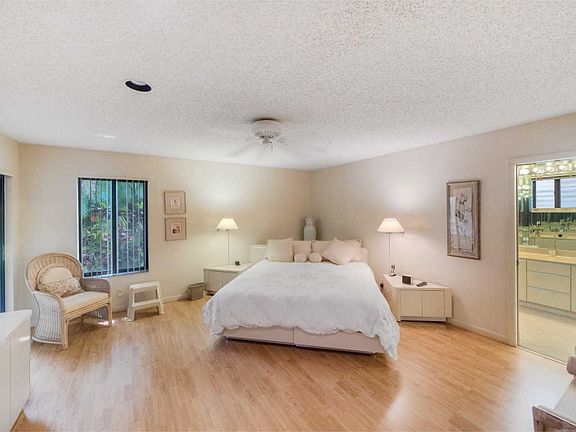 With over 2,000sf under air, massive master suite and a HUGE living room constantly bathed in natural light from skylights, this beautiful unit is sure to make your friends and family go WOW! The galley-style kitchen has a retro feel to it, and the mirrored wet bar off the living room is an entertainer's dream - and quite the conversation starter. Built-in entertainment unit in third bedroom makes it a perfect man-cave and ideal for family movie nights. The glass-enclosed (and air conditioned) patio means you can enjoy the tropical garden view comfortably all year.