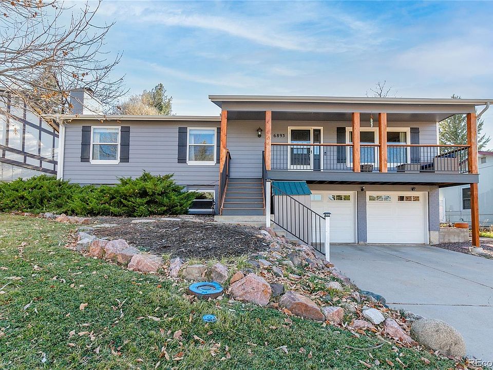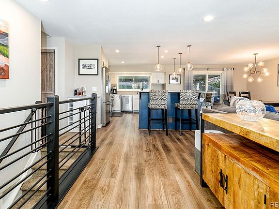 THIS IS THE ONE! Everything in this home has been professionally, tastefully and lovingly updated and improved! The exterior has fresh paint and a new Trex front porch with mountain views. Inside, the main level was fully renovated with new LVT flooring throughout, new paint, new designer lighting, new railing & banister on the stairs. The CHEF'S KITCHEN was completely remodeled in 2020 with stylish cabinets that boast soft close doors and a custom pantry with pull out drawers, a huge island with plenty of seating and tons of storage, beautiful leathered granite countertops, a new Bosch gas stove and pot filler spout, and hexagon backsplash. There is a spacious primary suite with French doors, two large closets and an en-suite bathroom with fun barn door access. All three bathrooms in the home were renovated with new paint, new vanities, new tile, bath and showers, and frameless glass shower doors in the primary and basement bath. There are two additional bedrooms on the main level, all bedrooms have fresh paint & light fixtures and custom cordless window coverings. The basement has a bright, large living area with lookout windows, a wood burning fireplace and built-in shelving. There is a fourth bedroom with an egress window and a huge closet off the bathroom. Additional storage, laundry and an oversized attached 2 car garage, plenty of room for 2 vehicles and all of your toys and gear. Outside find a fully landscaped yard with custom elevated planter boxes with sprinklers and drip system, a big covered patio, two new fences w/ upgraded metal posts, and 2 new retaining walls. New A/C and HVAC system installed 2022. Security system with 2 Ring cameras, smart sprinkler system & thermostat. Awesome Littleton / Columbine West location, easy access to highways and light rail, 12 minutes to downtown Littleton, and a community park 1/2 mile away with a new pool! See supplements for a list of improvements and features.