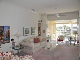 JUST REDUCED $20,000!! WILL SELL FAST!! Naples Real Estate At Its Best!! Beautiful 2nd floor coach home offering nearly 2,000 sqft under air - this is one of the largest coach homes in Calusa Bay! Original owner, impeccable condition, equipped w/ many upgrades, & ready for its 2nd owner. 2 Den (or 3rd bedroom), 2 baths, & 1 car attached garage. Beautiful & bright kitchen featuring recessed cabinets, GE Profile appliances & many decorative items to make it feel like home. The lanai features diagonally laid tile, overlooks a relaxing Southern lake view w/ fountain, & is fully equipped w/ electric hurricane shutters. Crown molding in the living areas, chair rail in the formal living/dining room, custom mirrors in a variety of places, raised vanities in bathrooms, storage shelving in garage, plantation shutters, & much more! Master bath features dual sinks, jetted roman tub, & separate shower. Calusa Bay is conveniently located in the heart of Naples, & offers a myriad of amenities!