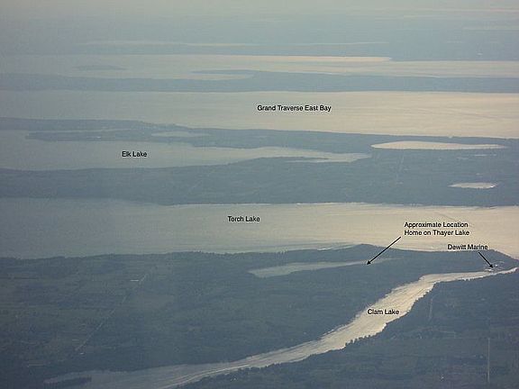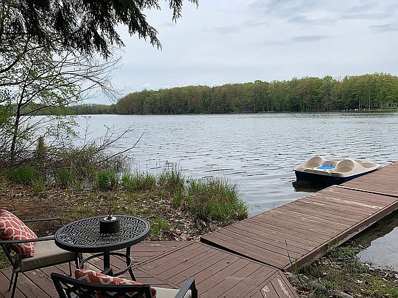 LOVELY WATERFRONT HOME on beautiful no-wake Thayer Lake with the perfect mix of rustic and modern. Unbeatable location off a quiet street with no through traffic yet close to everything including 2 minutes to Dewitt Marine and The Dockside plus Torch Lake, Clam Lake, Lake Bellaire. Located in between the towns of Alden & Bellaire (11 minutes to Shorts Brewing!) and an easy drive to Traverse City, Charlevoix, Elk Rapids, Boyne, etc. Property offers 80' of private frontage. The home itself boasts 3 updated bedrooms, 1.5 baths, open concept living, exposed beams, full mud/utility room and large wrap-around deck. Excellent layout with 2 king bedrooms on either side of a Jack-and-Jill powder room upstairs plus 1 queen bedroom near the full bathroom downstairs. Great closet space throughout. New well dug in late 2008. Updated laundry & utility sink plus newer dishwasher and microwave. Spacious, clean shed with electricity for your tools and lake toys -- plus space for a full second refrigerator. Invisible fence line buried but no transmitter/collar. Furniture pieces and kayaks / pedal boat are negotiable. Live your WATERFRONT Up North dream at an affordable price with a perfect layout and location! Square footage is estimated (home is a 32'x26' box with two levels). Thayer Lake is a 100 acre no wake lake great for fishing, swimming, kayaking, snowshoeing, etc.