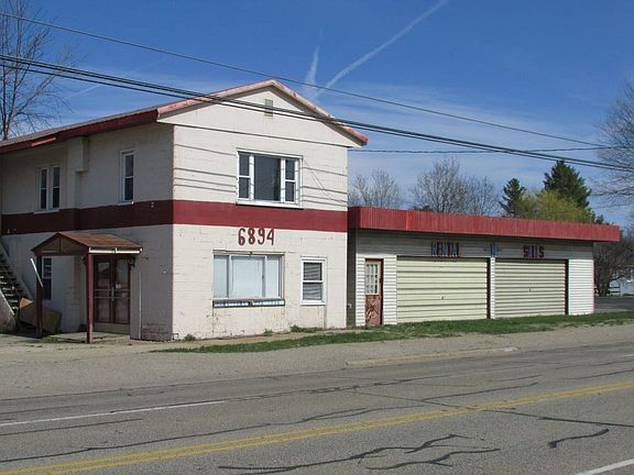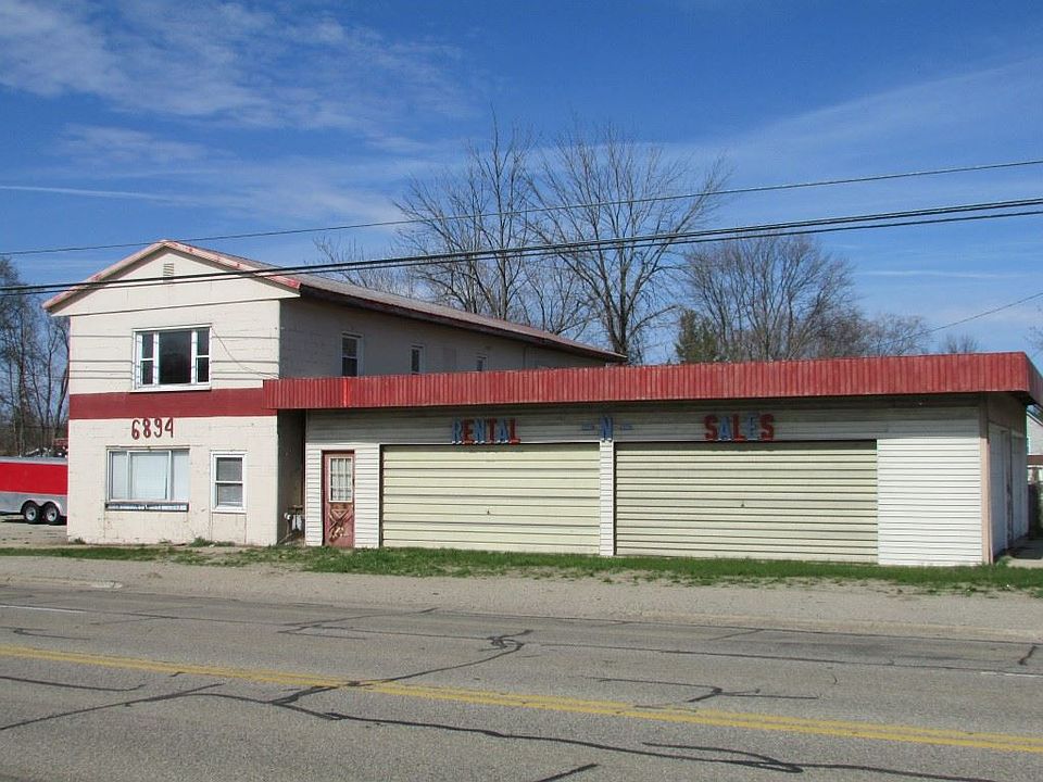 Possibilities are limitless! 160ft. on M-55. Large garage and warehouse space to start your business. Living quarters above. Houghton Lake is at the road end. Formerly a Tool & Supply Rental Business. Land Contract available. Make an Offer!