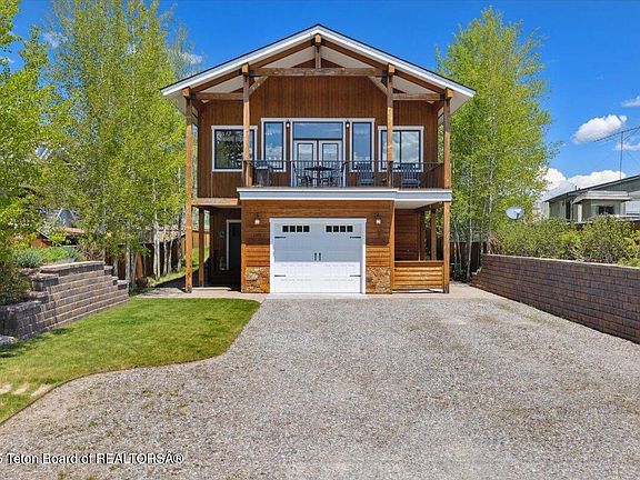 Custom built in 2015, this thoughtfully designed 2-story, 2,306 sq. ft. residence includes 4 bedrooms and 3½ baths, with two ensuite bedrooms—one on each level—offering flexible living for family or guests. Expansive second-floor windows capture panoramic views of the Grand Teton and Gros Ventre ranges, while bringing in daily light and the rhythm of changing seasons. A large covered front deck and a second rear deck extend the living space outdoors, ideal for entertaining or quiet wildlife watching.
