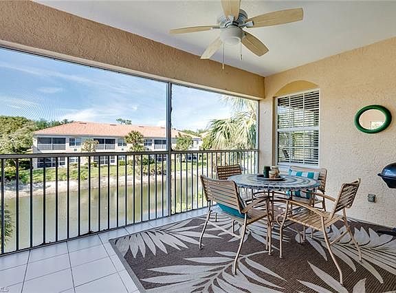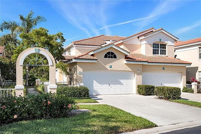 Rarely available TWO CAR GARAGE in highly desirable CALUSA BAY NORTH. This extemely spacious 1982 sqft End Unit Carriage home with Volume ceilings & TWO MASTER suites (1 with ensuite and the other a huge JUNIOR MASTER with 2 closets!!), has Granite counters, Quality laminate floors, huge Kitchen, Diningroom and an additional Eat-in Breakfast area that overlooks the screened in Lanai on a sparkling Lake with Fountains. For the Entertainer, the large screened in Lanai can easily accommodate a table of 8 for your outside "al fresco" dining pleasure. The main floor outside patio is a coveted area to enjoy your morning coffee. This amenity rich community offers 2 community pools (one lap pool and a separate pool), Tennis, Health Club, Nature Trails, Social Room, Library, and a Fishing Pier. Prime North Naples location just minutes from the Mercado, Waterside Shoppes, Artis, Fine Dining and only 3 miles to VANDERBILT BEACH. AC- Mar 2016, Water Heater 2013, Garbage Disposal April 2018