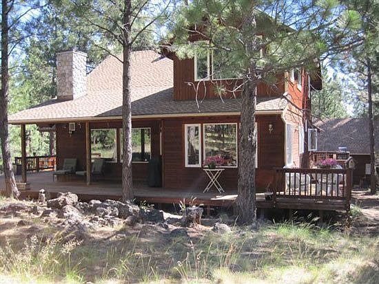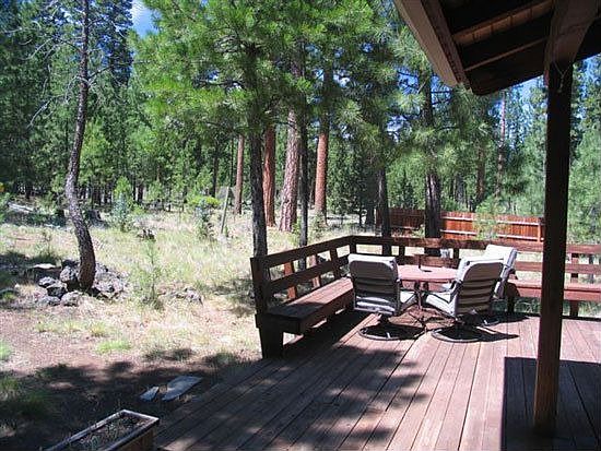 Lodge-style home backed to Deschutes National Forest. Beautiful custom cedar home with log, wood and river rock accents. Floor to ceiling river rock fireplace, large loft for media room or spare bedroom, 2 master suites. Very special, serene setting on a rare lot. Light, bright home with spacious open feeling. Lots of windows. Nicely developed native landscaping for low & easy maintenance. Room for horses. Neighborhood Description Quiet, friendly, small neighborhood surrounded by national forest for easy hiking, etc. Off of paved, but little used rural road. Park for kids, protective covenants, low HOA, lower taxes, friendly neighbors. Horses allowed.