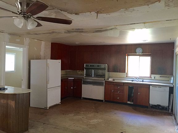 BUILD YOUR DREAM HOME HERE!! This little home has BIG potential if you are looking for a great piece of land to build your dream home! Steel carport will easily fit 4+ cars or tractor, recreational toys, etc. Antique Frigidaire Oven in kitchen! Living room & bedrooms include newly installed laminate flooring. Space outside kitchen would make a great enclosed patio or perfect spot to add additional square footage since slab is already poured! Wooden storage area would make great horse stall area!