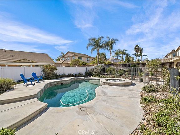 Welcome HOME! This beautiful 4 bedroom 2.5 bath single family residence has just about everything you are looking for. An OPEN FLOOR PLAN welcomes you upon entry, perfect for entertaining friends or just relaxing with the family. The kitchen boasts STAINLESS STEEL appliances, CORIAN counters, and enough cabinetry to please a gourmet chef. There is DIRECT ACCESS to the 3-car garage with storage racks! The layout of the kitchen and family room combo will allow you to add a center island or breakfast bar if you so desire. Upstairs, you will find the primary bedroom suite and three other spacious bedrooms - perfect for a growing family or home office. The low-maintenance backyard is an entertainers dream: enjoy a COVERED PATIO for outdoor dining, a gas FIRE PIT, and a sparkling SALT POOL and a SPA for those hot summer days. The grassy front yard enhances the curb-appeal of this well cared-for home, with convenient access to both shopping, and the 15 Fwy. This is one you won't want to miss out on!