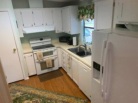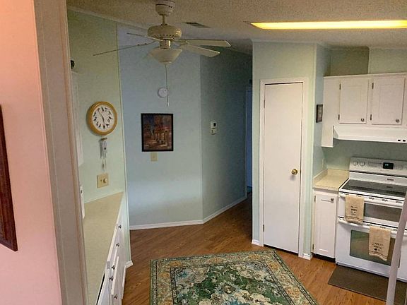 This well-maintained home comes partially furnished with more than $10,000 in upgrades. Here are some of the highlights: New A/C, ductwork, appliances, carpeting and painting. This adorable, two-bedroom, two bath has vaulted ceilings throughout. Beautifully done window treatments throughout the home are included. The kitchen features a double drain sink and a built-in pantry. Amana Refrigerator with ice maker and filtered water system new 2017. The Whirlpool dishwasher new 2017 Solid surface range with two oven compartments in 2015. Engineered oak flooring in the kitchen, entryway, and hallway. This home has an unobstructed view of a beautiful lake with lighted fountain. The large (10' x 22') windowed / screened lanai is the perfect place for you, your family, and guests to relax and enjoy the lake with its stunning sunsets, wonderful bird life and lighted fountain. Ridgewood Estates is a beautiful community with tree-lined streets, sidewalks, fabulous pools, club houses and a 24/7 staffed gated entrance. Ridgewood Estates offers many activities including; shuffleboard, water aerobics, and special events in the community center. Located conveniently to restaurants, grocery stores, shopping plazas, pharmacies, medical laboratories, medical and dental offices, banking, and a post office. This home will not last long. Please call for your private show. Here are some other of this home's features and improvements: · Master bedroom with walk-in closet and attached master bath. · Second bedroom and second full bath. · Central air, duct system below home new 2018. AC has a 10-year warranty. Last inspection May 2019. - Interior ducts professionally cleaned 2017. · Carpeting in bedrooms and living room new 2017. Steam cleaned and treated with stain guard June 2019. · New garbage disposal and kitchen faucet system 2017. · Microwave, toaster, toaster oven and portable kitchen island are all in excellent working order. · Lanai overhead fan system installed new 2018. - New main entry stairs and railing 2018. - New exterior lighting 2018. - New closet organizers in guest bedroom and guest bath 2017. - New landscaping and flowering plants 2018. - Newer overhead fan and light system in dining room. · Skylights, updated lighting and granite and granite-look vanity tops in both bathrooms. Toilet tank interiors rebuilt. - Dining table and chairs, lanai table and chairs and some other furnishings stay. · Kitchen ready to use with dishes, bowls, cups, cutlery, and glassware. · Near both Riverwood Estates pools and clubhouses. More than $10,000 invested on new AC, new AC ductwork, new appliances, carpeting, and painting. This is a great deal at this price! Lot rent is only $831/month! Get into your fabulous Florida home now!