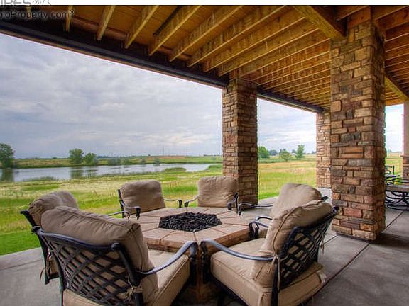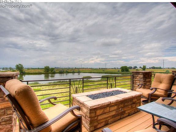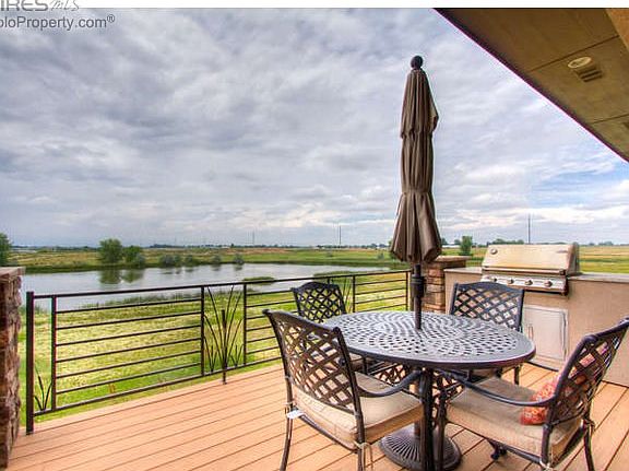 Amazing waterfront home with ALL the bells and whistles. Wood floors and tile are accompanied by top tier finishes, built in gas grill, 2 built in fire pits, gourmet kitchen and customized features throughout. Enjoy sunrises, sunsets, longs peak mountain views overlooking greenbelts and the lake from your beautiful home and decks. Priced below replacement cost for a quick sale; location, lot and views cannot be replicated.