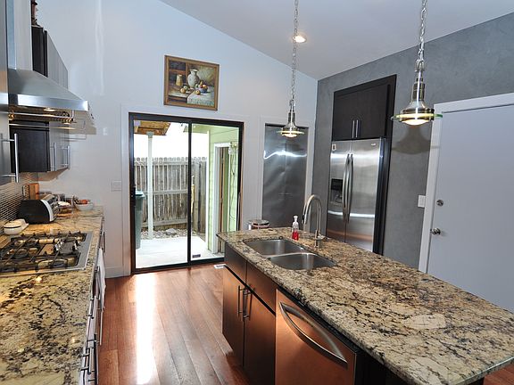 Don't miss this fantastic remodeled tri-level in Hidden Lake! From the amazing kitchen with slab granite, stainless appliances, gas cooktop and recessed refrigerator to the updated iron staircase, this home is sure to impress! King sized bedroom with bath and walk-in closet and two more bedrooms on upper level. Large family room on lower level with lots of light, another bedroom/office and a 1/2 bath. Big landscaped corner lot. You'll appreciate low energy bills with the home's solar panels! Close to park, lake, light rail and shopping.