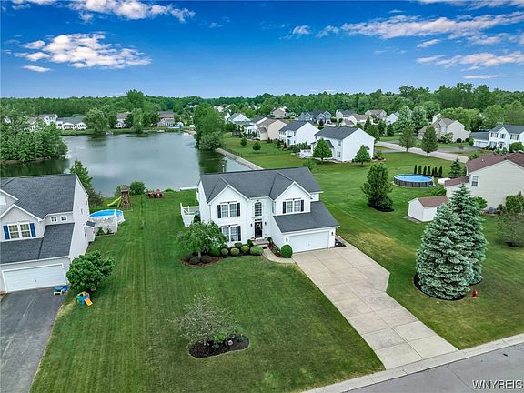Welcome to 6899 Amanda Lane! This well maintained and perfectly cared for Colonial in the Starpoint school district offers nothing but the best! Built in 2001, this 3 bedroom, 2.5 bath property offers a spacious open living room/ kitchen/ dining layout with backyard access to your heated in-ground pool (new liner 2021). Your kitchen includes new granite countertops, freshly painted cabinets, a full pantry, island with granite countertop, and all appliances. Beautiful hardwood flooring runs throughout main living, complete with new blinds, new crown molding and fresh paint. Your oakwood railing staircase leads to the open hallway complete with brand new carpeting throughout your 2nd floor living. Master bedroom features a walk-in closet and master bath - both with new flooring and light fixtures. Upper main bath also features new flooring and light fixtures. New ceiling fans run throughout the property. Furnace and Central Air both new 2023. Last but not least, pond access with your very own dock! The only thing left to do is unpack your boxes! Offers due 6/22.