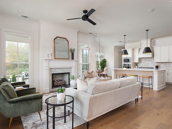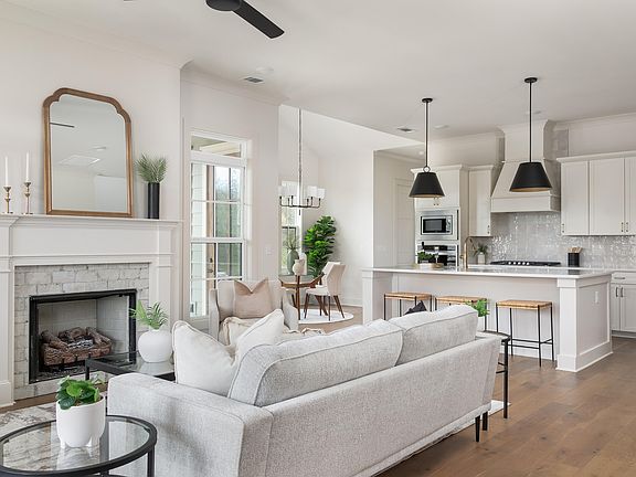 The ''Lincoln'' is beautifully designed with a wrap-around porch and side architectural features that provide stunning curb appeal. As you enter the covered porch, you'll be greeted with a double 8ft glass door adorned with a charming gas-lit lantern. You'll walk into a well-lit, open foyer before transitioning into your open living, dining, and kitchen floor plan. The downstairs is standard with 10ft ceilings and 8ft doors, making each space feel elevated and elegant. The living room is positioned in the front with a direct connection to the wrap-around porch and unimpeded views of the park. You'll love how the dining area is equipped with a vaulted ceiling and panoramic view through all the surrounding windows, along with direct access to the wrap-around porch. The large kitchen will have a fully functional, well-lit walk-in pantry that is to die for. Your covered patio will open up to a personal sodded courtyard. The courtyard has an option to add a 4ft black aluminum fence. This home comes equipped with a private office on the main level. The large primary bedroom is located on the main level and is over 250 sq ft in size!