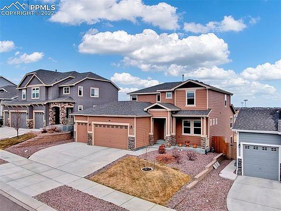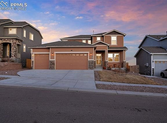 Beautiful Redondo floor plan is now available in the highly desired neighborhood of Dublin North! * Dont miss out on this spacious 5-bedroom, one owner home with central air! * Covered front porch with security door entry * Backs to trail! * Finished 3-car garage with two overhead openers & storage unit * Mud area bench by garage entry provides a great drop zone * Abundant hardwood flooring throughout most of the main level * Gorgeous gourmet kitchen features true double ovens, range top, granite counter tops, 42 cabinets, large island with sink, never used dishwasher, pantry, and a butlers pantry that leads to the formal dining room * Bright nook provides a walk-out to the back deck with an overhead retractable awning and retractable privacy screen.* The Great room features a gas fireplace * Separate and spacious main level laundry room with storage closet * Main level master bedroom with adjoining 5-piece bath with medicine cabinets, dual sink vanity, and granite counter * The upper level is comprised of a large loft area/second family room - with recessed lighting and a ceiling fan, three additional bedrooms all with ceiling fans, and an office with French doors * The finished walk-out basement offers an expansive bonus rec room, additional bedroom with adjoining bath, and a large storage area * The fully fenced and landscaped backyard is low-maintenance with a wood deck, large concrete patio, raised garden beds, and flagstone * Additional features include plentiful storage, a sprinkler system (front yard only) and drip system for plants and bushes in front and backyard, linen closet, ceiling fans in all bedrooms, upgraded baths with large showers, humidifier, walk-in closets, iron spindles, a gazebo/pergola, and solar motion lights. Enjoy easy access to D49 schools, shopping, dining, recreation, St. Francis Medical Center, and Peterson AFB.