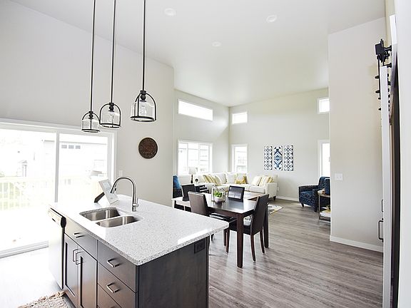 ***Base price does NOT include lot value.***The Pinehurst 3 Level floor plan is sure to impress with an open kitchen, dining and living area with 12.5' tall flat ceilings and transom windows for tons of natural light! This plan features a kitchen perfect for entertaining, an abundance of custom cabinetry, and an island with a breakfast bar. The kitchen also includes a reclaimed wood built-in dining table and a command center with barn doors for extra storage. The upper level features a spare bedroom, bathroom and a private master suite with walk-in closet. The finished lower level has a family room, bedroom, full bathroom, laundry room, and a storage room. The 2-stall garage can be made into a 3-stall on certain lots.