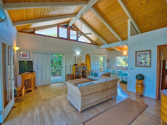 An inviting one bedroom/one bath living space is located on the ground floor with its own entrance and private deck/backyard space. The large lanai below the second story stays cool and creates a place for gathering, dining, game playing or it could be turned into a potential workspace.