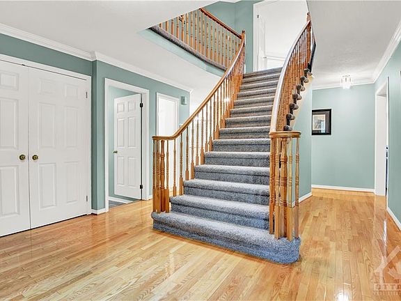 Morgan's Grant, walking distance to Kanata North tech campus and the Richcraft center. No rear neighbors, corner lot ~176' deep x ~60' wide, w/ a 4-sided brick, stone & Tudor stucco, two-story home, ~4,200 sqft of total living area. Updated vinyl windows, 3 skylights, 2 car garage, fenced rear yard interlock stone, and large two-tier deck. Inside large and open foyer with a double closet and the Scarlett Ohara staircase with oak railings. The second floor includes 4 beds, a 5pc ensuite & 3pc bath. The main floor includes the sunken front living room with a wood fireplace, laundry room, 2 pc bath, oak kitchen cabinets, stainless steel appliances (fridge, stove, dishwasher, range-hood), eating area, dining room, nook, living room with wood fireplace. The basement includes a large office, entertainment room, 3 pc bath, and 18' solid oak bar with oak cabinets, double sink, with space for a fridge, and sitting area with gas fireplace. Roof shingles (21), Gas Furnace (15) Ac (15) Carpet (22)