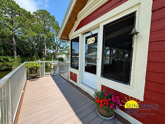 Welcome to your dream coastal retreat in the Hidden Harbor Neighborhood of Santa Rosa Beach! Conveniently located near shopping, dining, Emerald Coast white sand beaches, and entertainment, this stunning 3-bedroom, 2.5-bathroom waterfront home is your ticket to Gulf Coast paradise. Upon arrival, you'll appreciate the newly paved double driveway. Step inside and be charmed by the renovated interior, starting with a welcoming screened patio entryway. The main level is filled with natural light, featuring soaring wood-plank ceilings and exquisite hardwood flooring throughout the living areas. The living room, with its vaulted ceiling, seamlessly transitions into the dining area, creating an inviting atmosphere for relaxation and entertainment. The fully equipped kitchen is a chef's delight, boasting stainless steel appliances, ample cabinet space, a convenient breakfast bar, and luxurious granite countertops, which are also found in the primary bathroom. Just off the main living room, you'll find a spacious primary suite with a stall shower, soaking tub, dual vanities, and two walk-in closets, alongside a generously sized bedroom offering unparalleled beauty. Upstairs, the second and third bedrooms feature a jack-and-jill style full bathroom with a shower/tub combination and dual vanities accessible from both spacious bedrooms. A large utility room with washer/dryer hookups provides additional indoor storage space. Outside, your private oasis awaits with a partially fenced backyard, spacious multi-use yard, covered and open patio areas, and a private screened-in patio offering sweeping water views. Take advantage of the included boat slip, lift with remote (holds up to 33.5 ft. boat), and expanded dock for all your waterfront adventures. The outdoor amenities continue with a kitchen, fish cleaning station with water, two outdoor showers, covered patio swings, under-the-home storage, and an additional half bathroom. Whether you're sipping morning coffee on the patio, soaking up the sun on the deck, or entertaining friends and family, this magnificent home offers endless opportunities for coastal living at its finest. Lawn care is included. Don't miss your chance to make this your home! Pets (no outdoor cats) may be accepted upon owner approval with a non-refundable pet fee. In addition to the rental amount, all Sundance Rental Management residents are enrolled in the Resident Benefits Package (RBP) for $25.00/month which includes liability insurance, credit building to help boost the resident's credit score with timely rent payments, and much more! The benefits can be found on our website under Tenant FAQ.