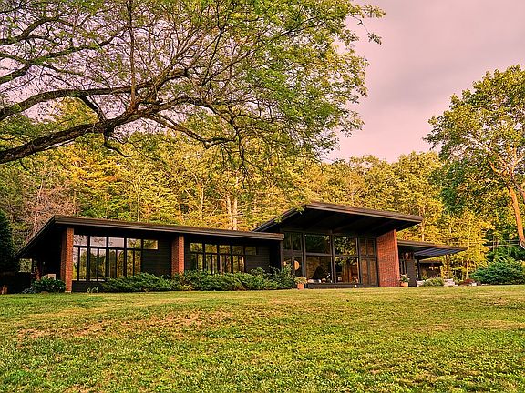 Atop 10 acres of peaceful forest and rolling meadow, with sweeping views of the distant Berkshire mountains, this rare Usonian-style home is a masterclass in mid-century architectural philosophy. Built in 1953, in the spirit of the Usonian tradition of Frank Lloyd Wright, this 2,750-square-foot residence is a thoughtful continuation of the ideals that defined Wright’s vision: Simplicity, harmony with nature, and an understated elegance born from careful proportion and material integrity. Nestled at the end of a quiet, dead-end road in Pelham, Massachusetts, the property offers privacy and serenity without sacrificing proximity to culture and community.