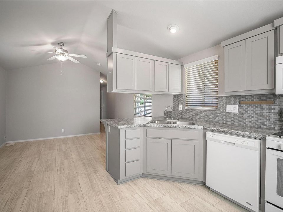 Priced below Market value with Lowest space rent in Santa rosa- $714. This beautifully maintained 2-bedroom, 1 bath manufactured home is nestled in 55+ adult community. Designed in a modern contemporary style with high cathedral ceilings, the spacious corner home exudes both elegance and comfort. Turn-key, making it a fantastic move-in ready option. Plus, with low space rent, you'll enjoy affordable living in a peaceful community. Don't miss the chance to own this charming home!